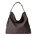 In the Fall Winter 2025 collection, crafted from dark brown suede, the Gucci Beatrix handbag features a relaxed silhouette elevated by the signature Horsebit detail on the shoulder strap. The gold-toned hardware enhance its refined feel, while a zip pocket inside keeps essentials secure. Elegant yet functional, it’s designed to carry your everyday must-haves with ease.
