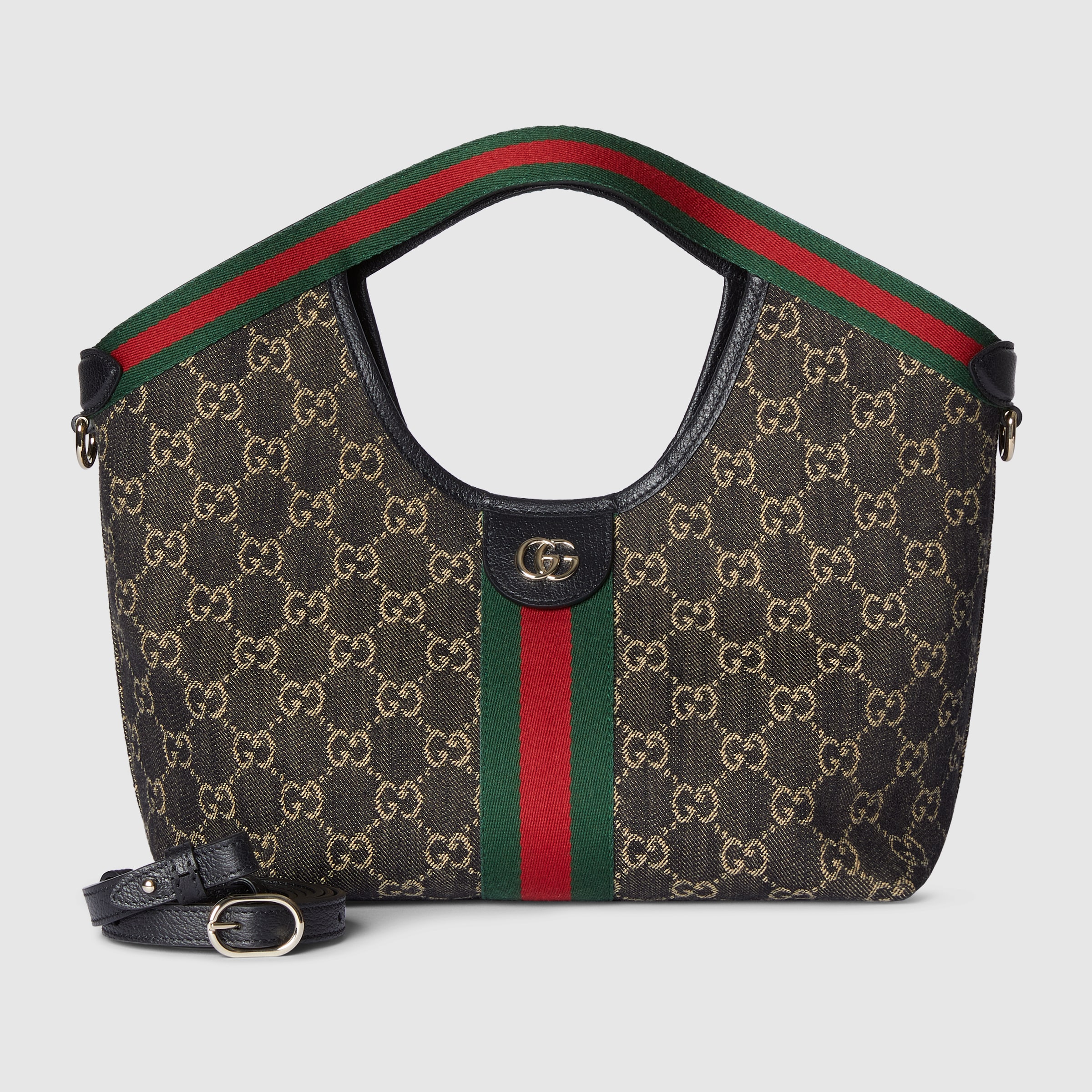 Inspired by the Gucci duffle silhouette, the Mini GG handbag continues to revisit the House’s codes and celebrated travel legacy with different materials. This version is crafted in denim for an added touch of softness, which speaks to its effortless elegance while highlighting the signature GG motif.
