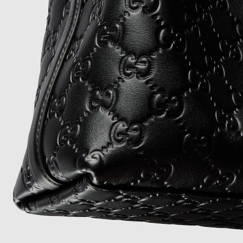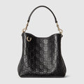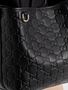 The exterior features a black embossed leather-style finish, offering a textured and sophisticated appearance. Subtle light gold-toned hardware adds a polished accent, while maintaining a clean and versatile aesthetic.