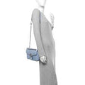 Expanding the "Skyline" collection into a larger, more versatile silhouette, this medium shoulder bag combines a serene light blue hue with signature chevron quilting. The cool-toned silver hardware perfectly complements the soft leather, creating a refreshed, modern look that transitions effortlessly from brunch to evening events.