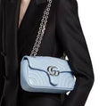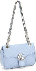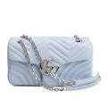 - Light blue matelassé chevron lambskin-style leather
