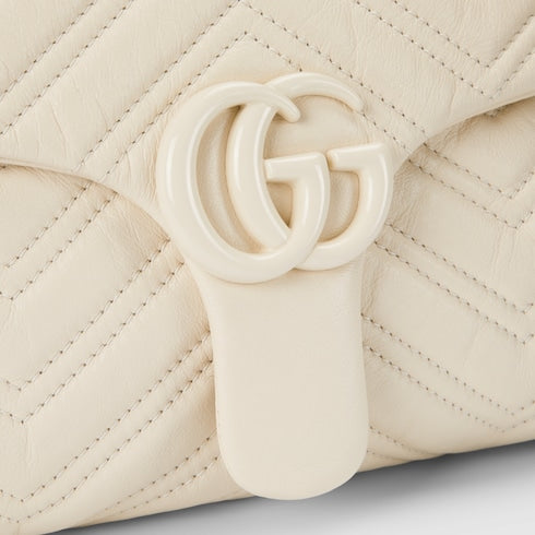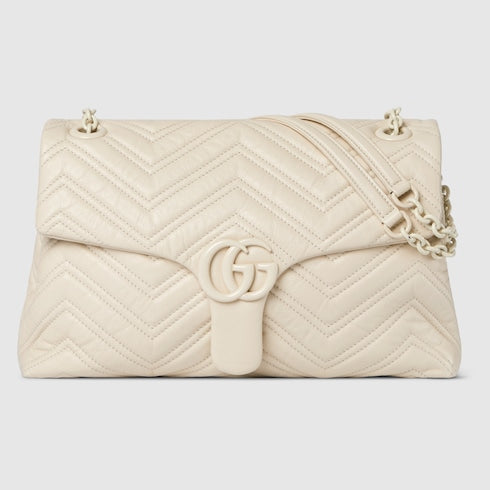 - Coordinating tonal enameled hardware and chain for a modern, monochromatic look