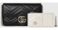 This "Nocturne" edition of the quilted shoulder bag offers a sophisticated, multi-functional design by pairing classic black matelassé leather with a striking white leather accessory. The antique gold-toned hardware provides a vintage-inspired contrast, making it a timeless piece for any luxury-inspired wardrobe.