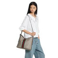 The largest edition in the "Legacy" collection, this shoulder bag is designed for those who need maximum capacity without sacrificing high-end aesthetics. Combining the timeless beige and dark brown monogram with the iconic "Web" stripe, it serves as a sophisticated travel or work companion. Its generous depth and additional detachable pouch make it a standout for organization and style.