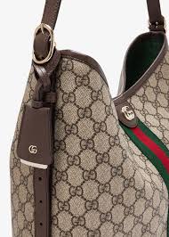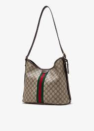 - Iconic tricolor stripe and signature interlocking metallic hardware detail