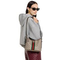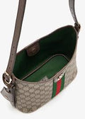 A quintessential piece for any heritage-inspired collection, this small shoulder bag balances iconic monogramming with a highly functional, deep-set silhouette. The combination of the signature beige and brown canvas with the classic striped detail creates a timeless look that remains a staple in American high-fashion circles.